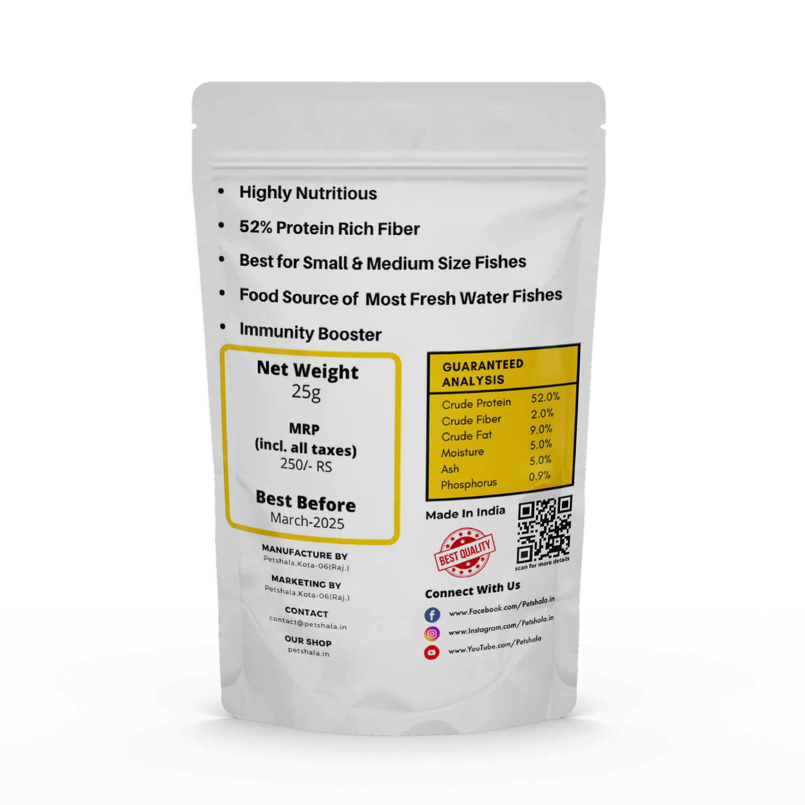 crude protein min 52%, crude fat min 9%,crude fiber max 2%, moisture max 5%, Ash 2%, phosphorus 0.9%